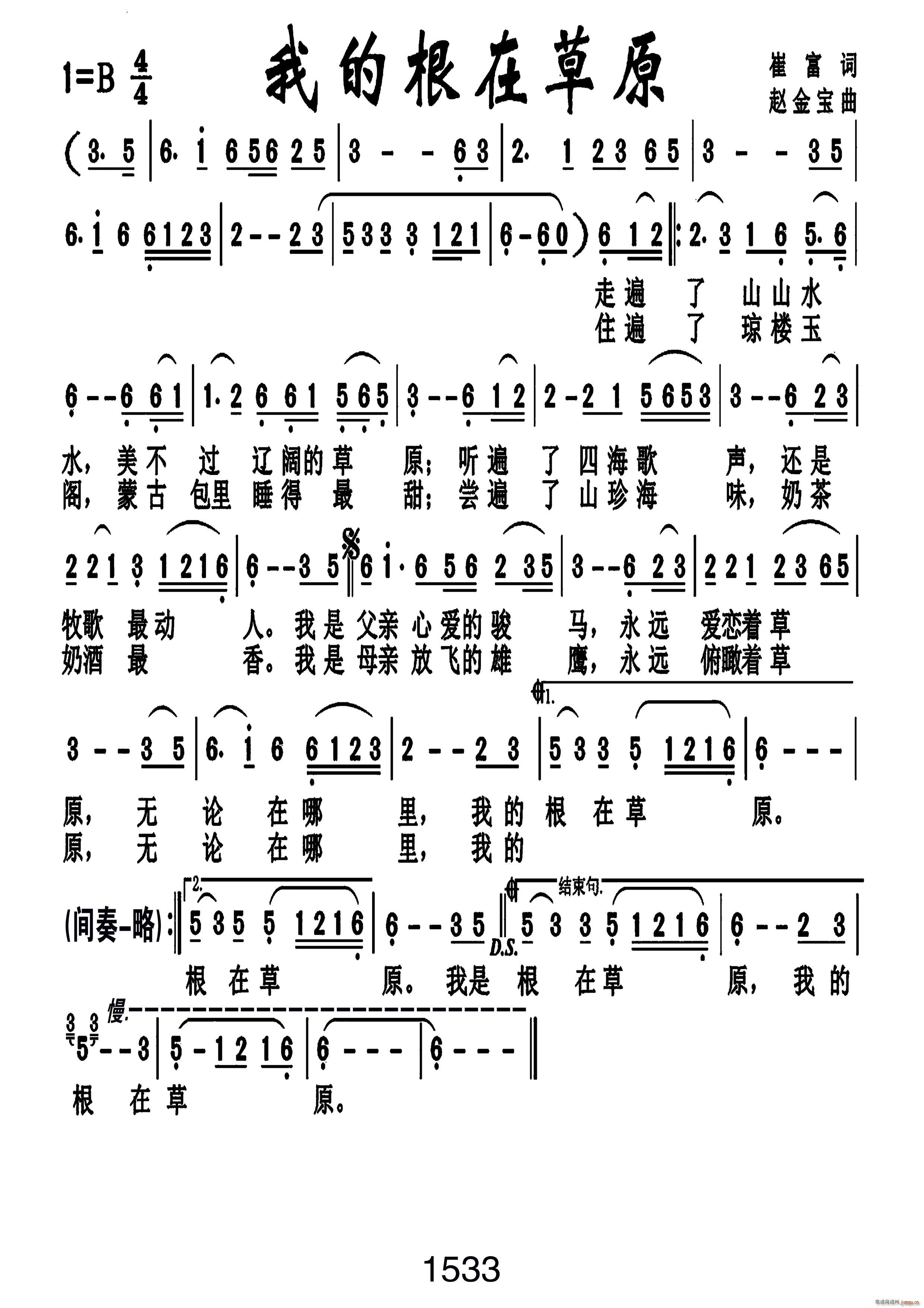 [三字歌谱]草原根(程建林词 刘晓文曲)