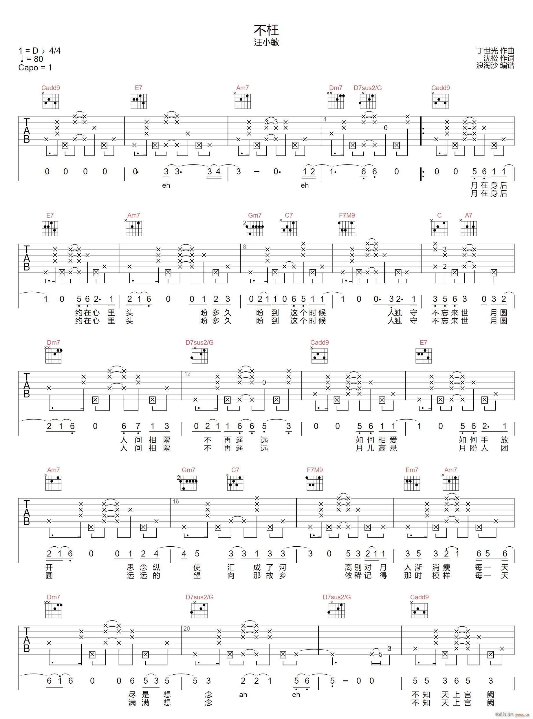 [吉他谱]不枉 ( C调指法原版编配) 汪小敏