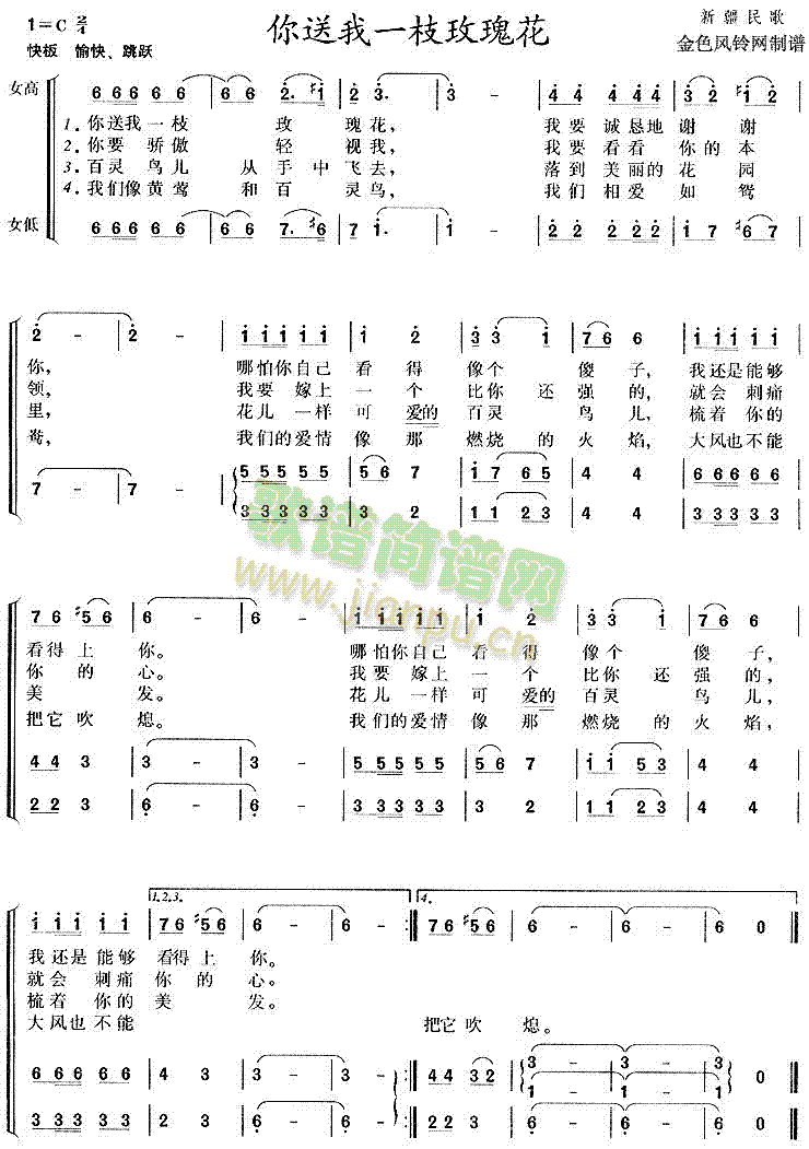 [八字歌谱]你送我一支玫瑰花(新疆民歌)
