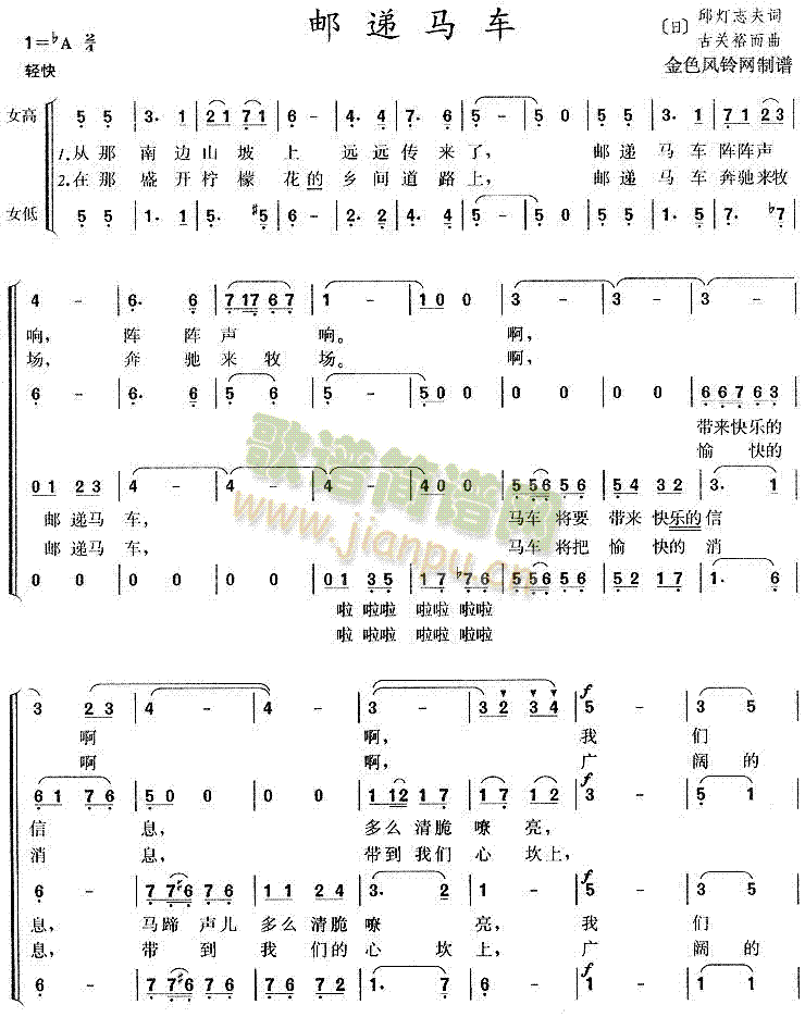 [四字歌谱]邮递马车 日本歌曲