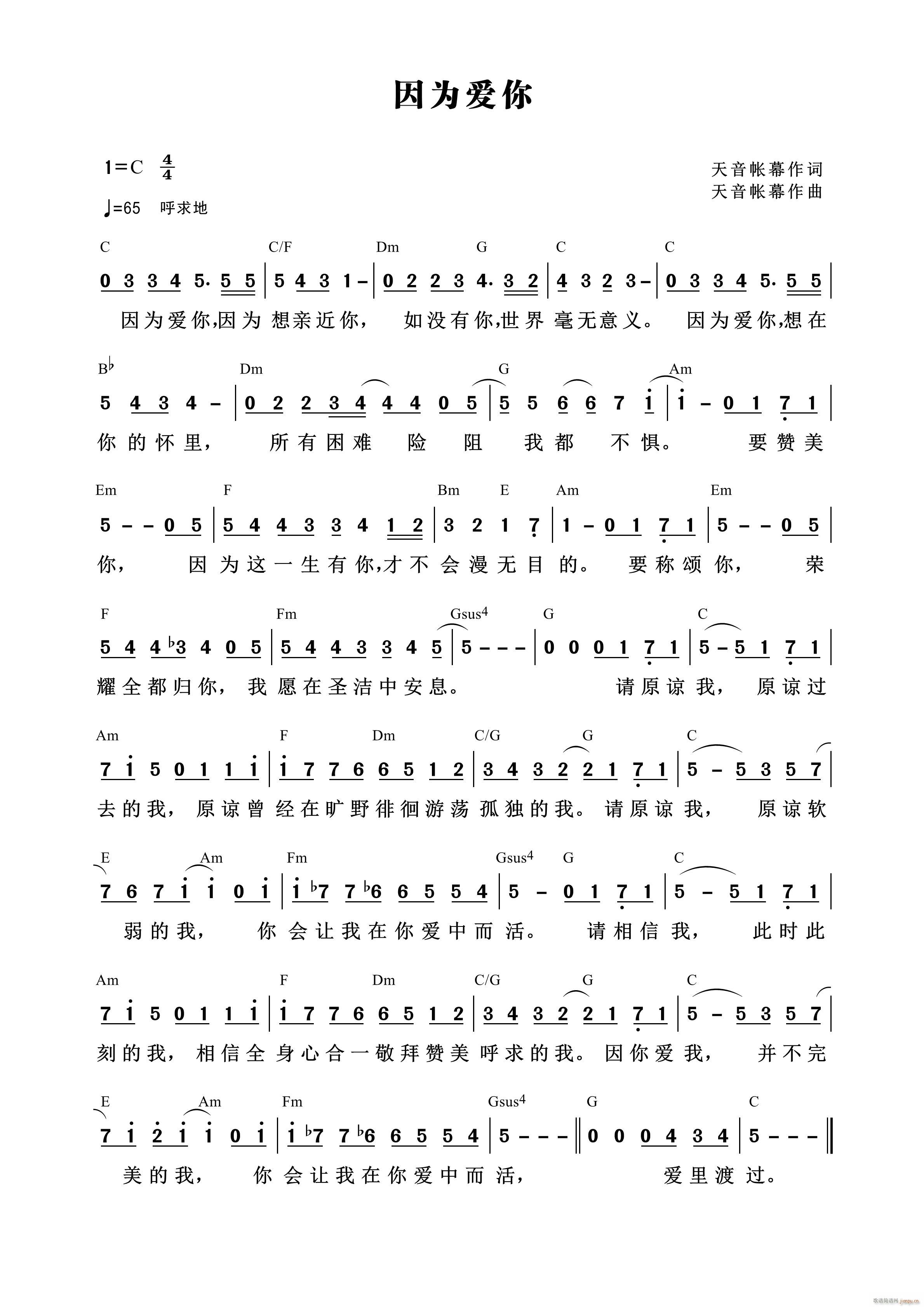 [九字歌谱]为了爱 (第570首)