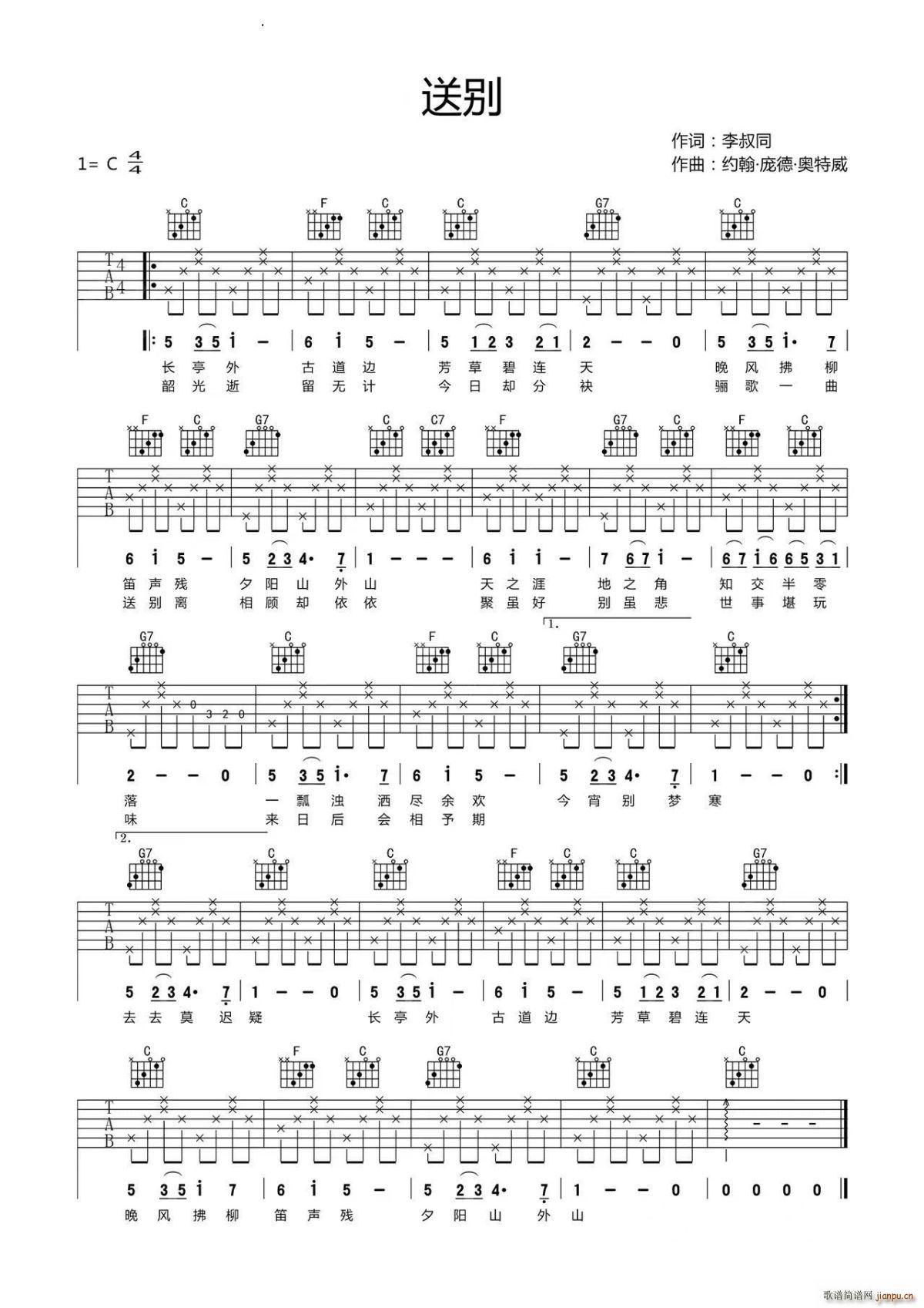 [十字及以上]送别尤克里里谱( C调 ) 留声玩具
