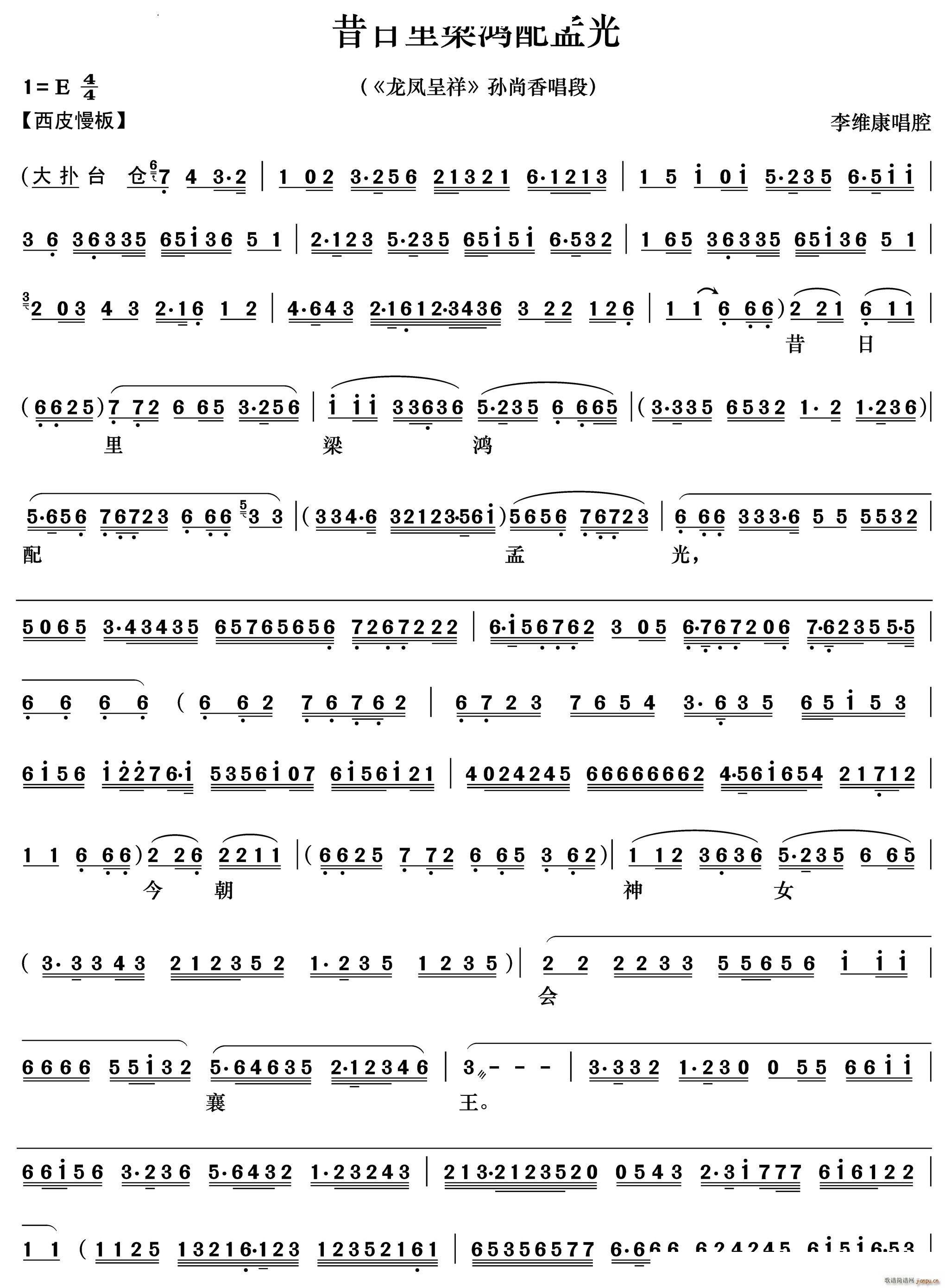 [京剧曲谱]昔日里梁鸿配孟光《龙凤呈祥》孙尚香唱段 李维康