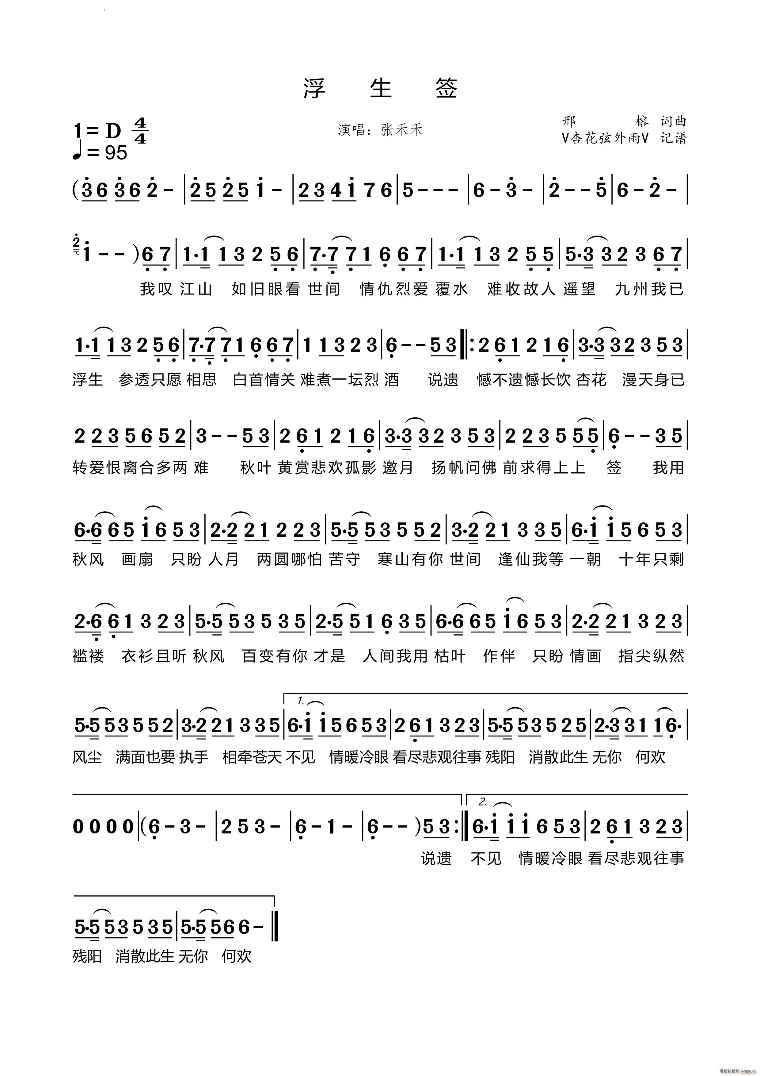 [五字歌谱]浮生花事了 呀大叔 叶洛洛