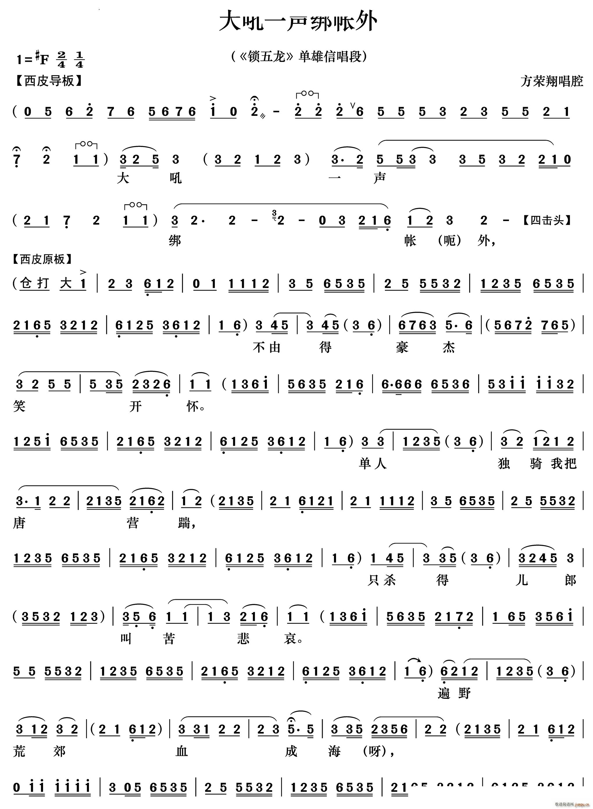 大吼一声绑帐外 锁五龙 单雄信唱段(京剧曲谱)1