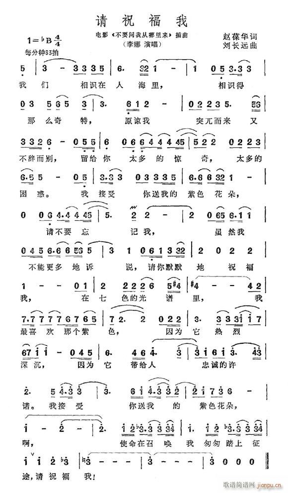 当前位置: 歌谱简谱网 > 十字及以上 > 请祝福我(电影《不要问我从哪里来》片尾歌)