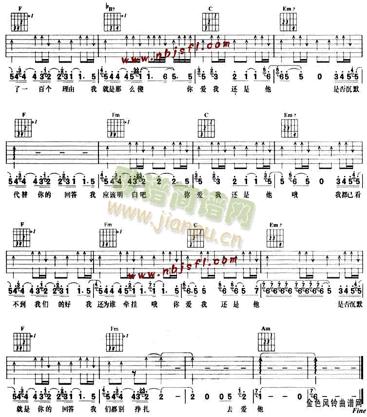[吉他谱]一直很安静(《仙剑奇侠传》插曲) 阿桑