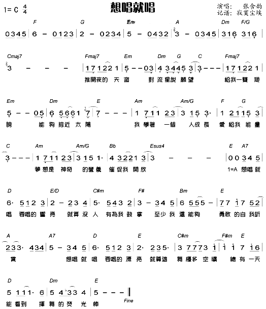 [四字歌谱]想唱就唱