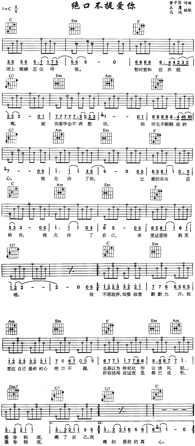 [其他乐谱]绝口不提!爱你 歌曲类 简谱 郑中基