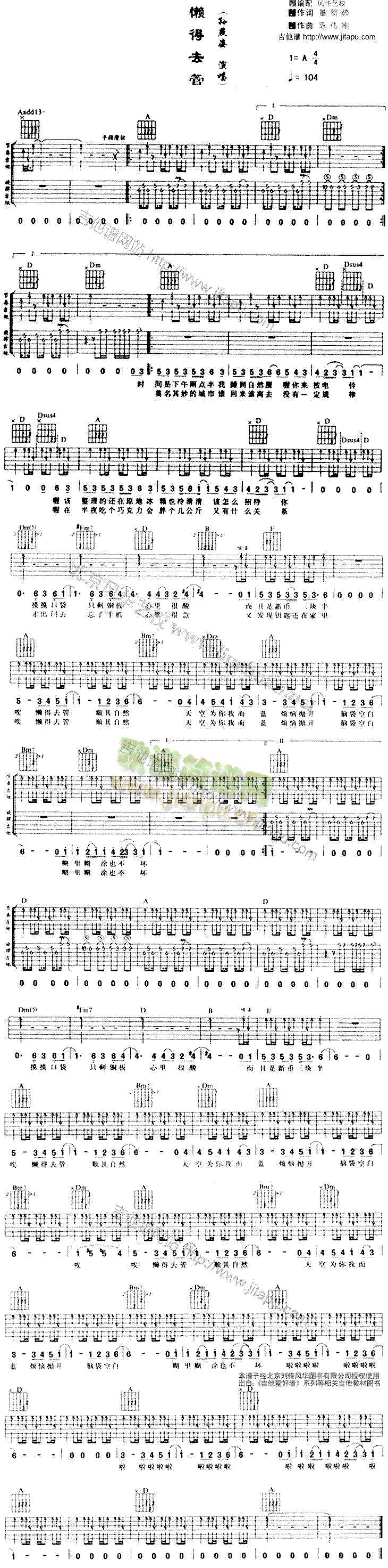 [吉他谱]懒 未知