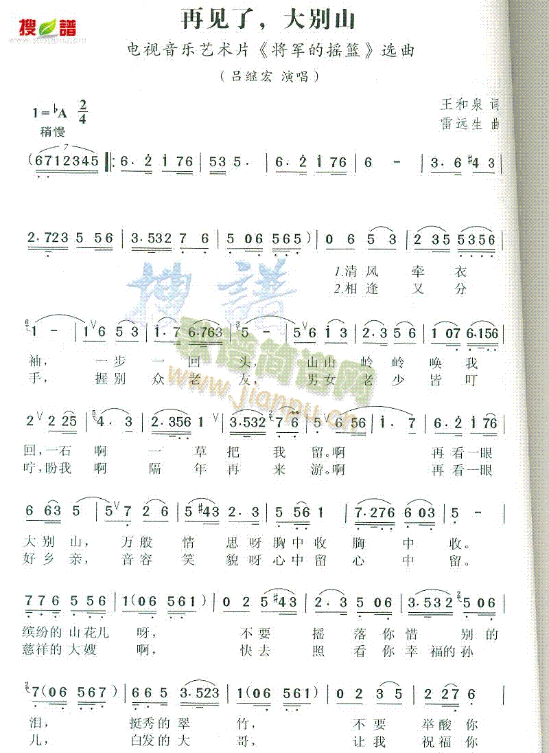 [六字歌谱]再见了大别山(《将军的摇篮》选曲)