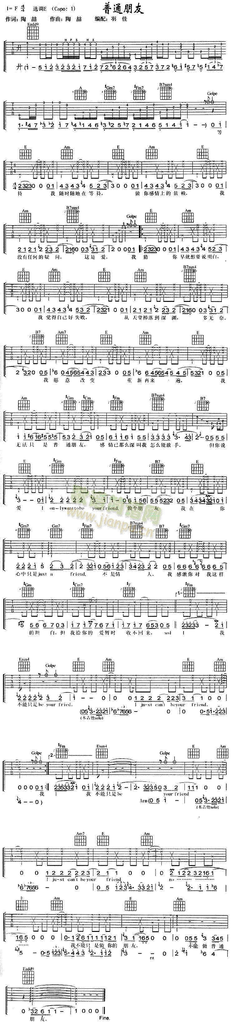 [吉他谱]普通朋友独奏版吉他谱( GTP谱) 未知