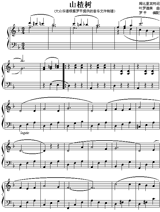 [钢琴谱]山楂树[钢琴曲谱] 未知