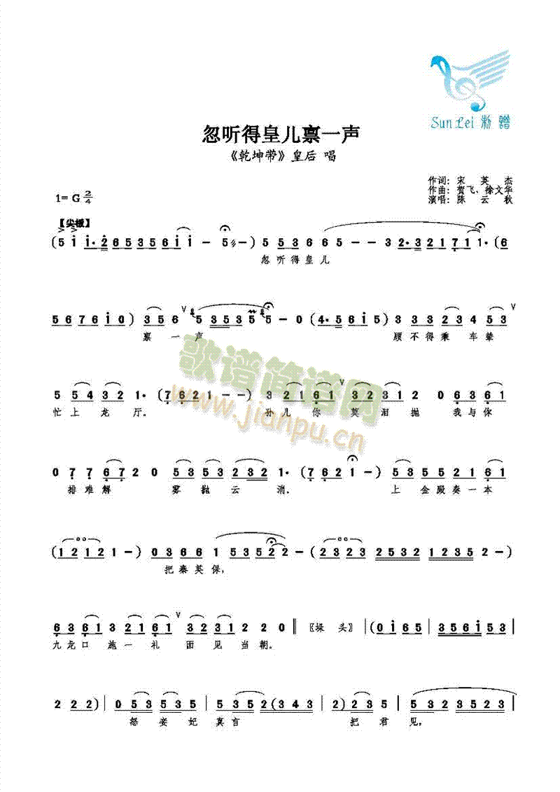 [八字歌谱]忽听得皇儿禀一声 【老旦】陈云秋