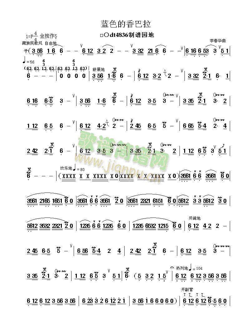 [六字歌谱]蓝色的香巴拉 李春华葫芦丝