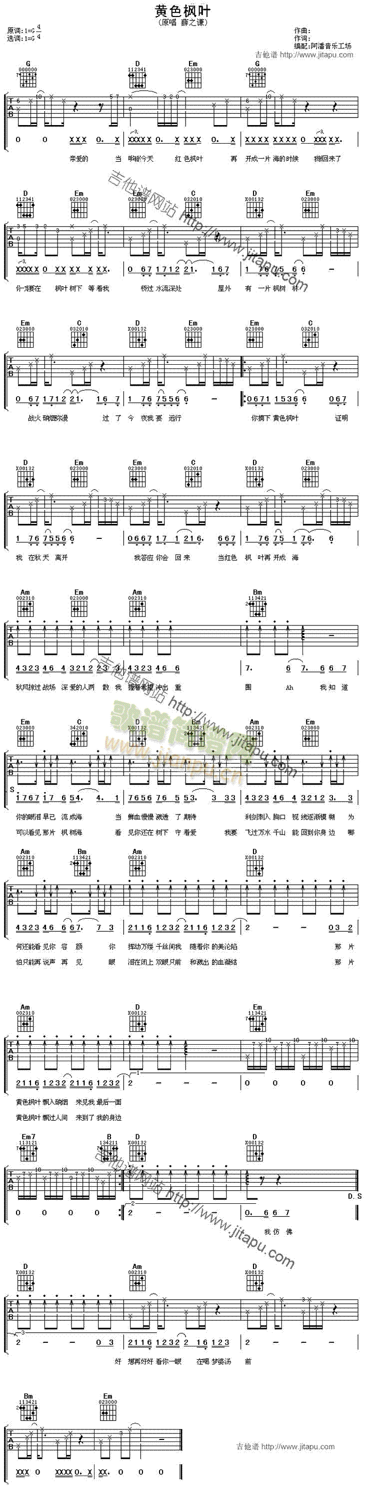 [吉他谱]黄色枫叶 未知