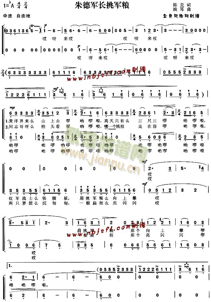 [七字歌谱]朱德军长挑军粮[合唱曲谱] 未知