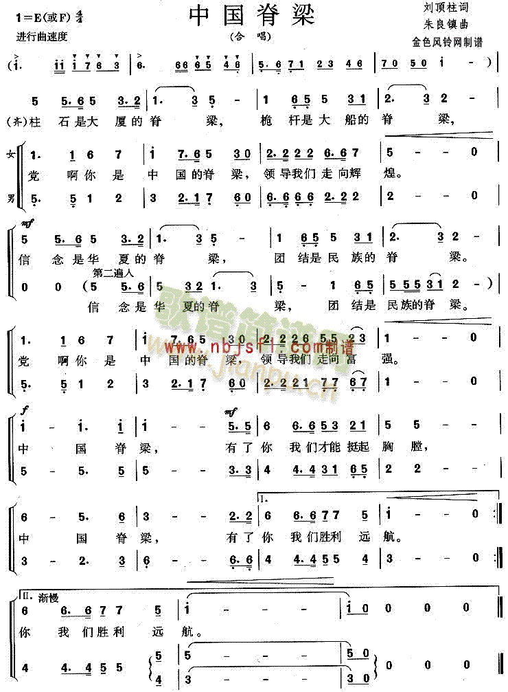 [四字歌谱]中国脊梁[合唱曲谱] 未知