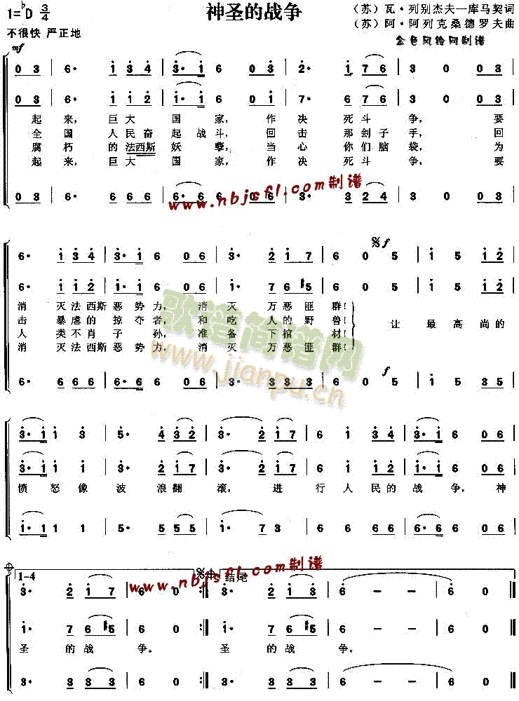 [五字歌谱]神圣的战争[合唱曲谱] 未知