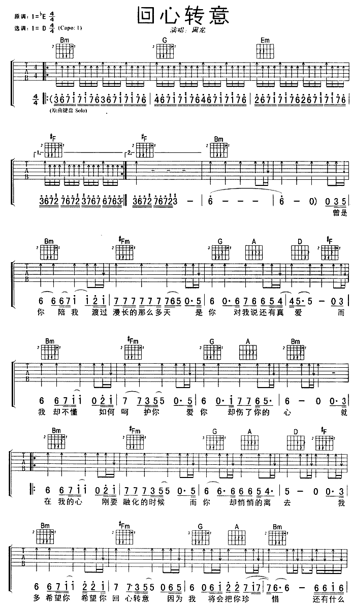 [吉他谱]回心转意 (零点乐队 ) 未知
