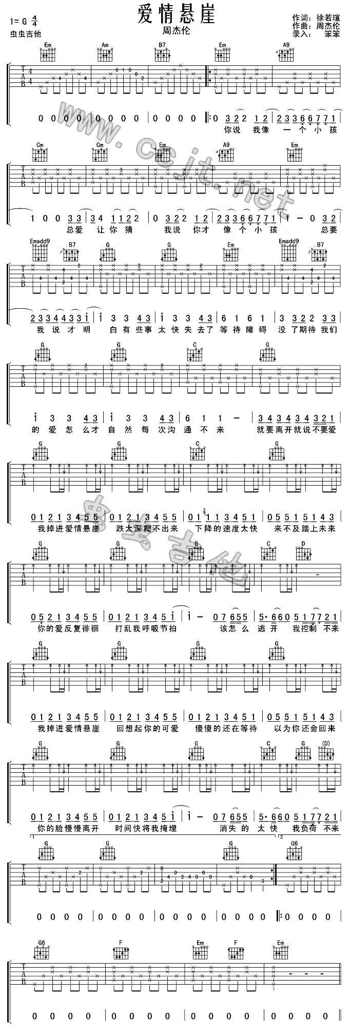[吉他谱]爱情悬崖 周杰伦