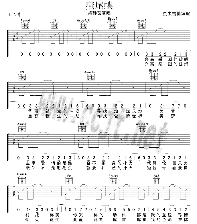 [吉他谱]燕尾蝶 梁静茹