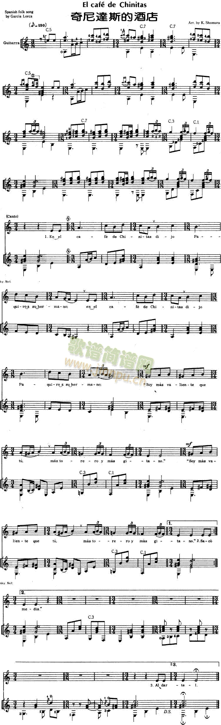 [吉他谱]奇尼达斯的酒店(古典曲)