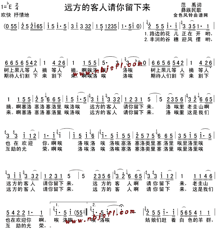 [十字及以上]远方的客人请你留下来(彝族民歌)[合唱曲谱] 未知