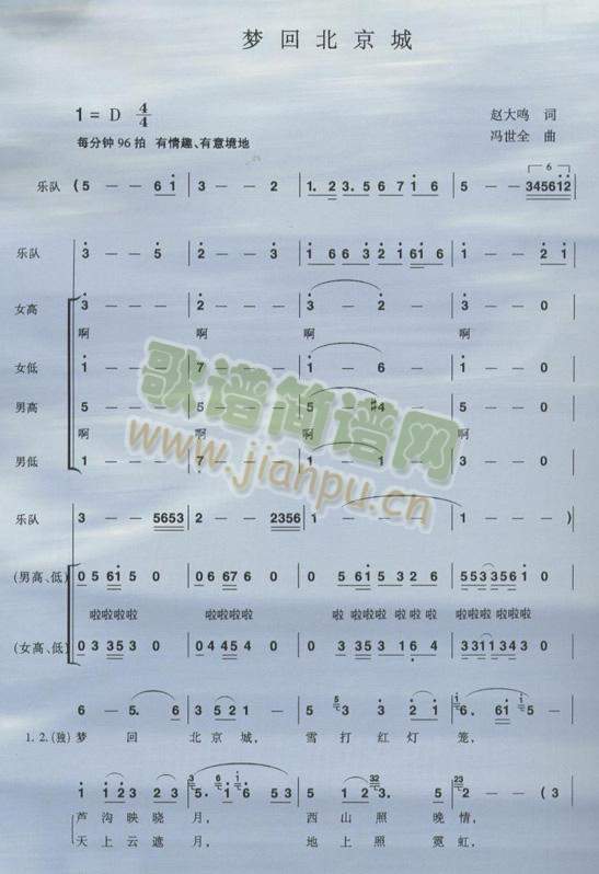 [五字歌谱]梦回北京城[彩谱] 宋祖英