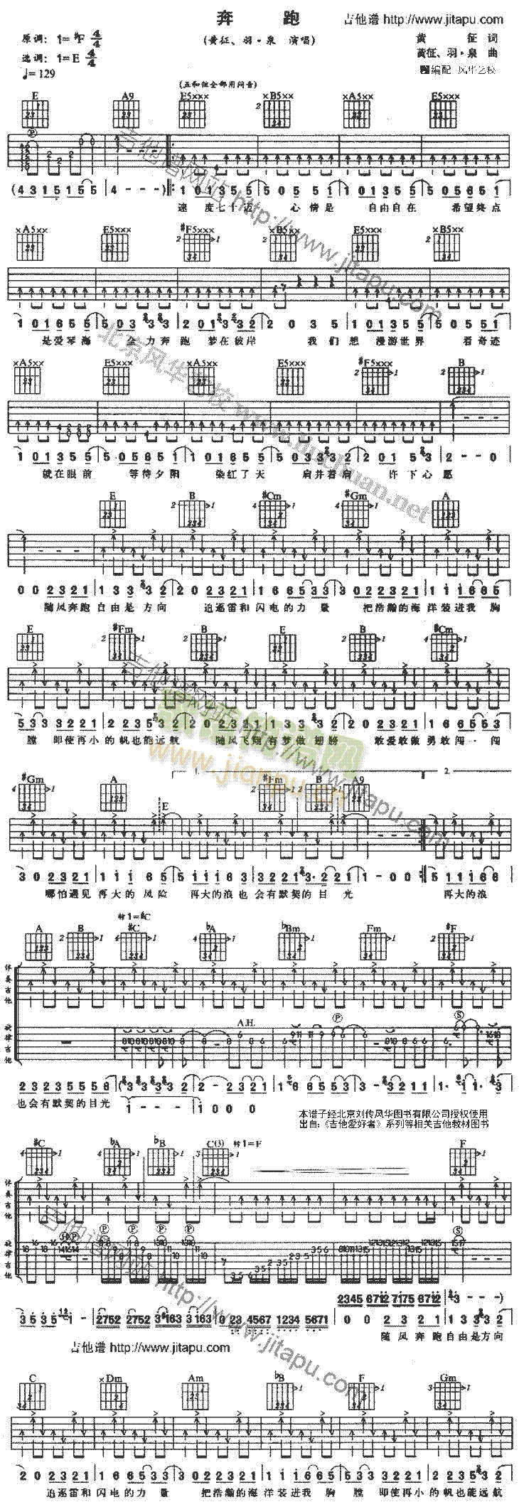 [吉他谱]奔跑 (黄征、羽泉 ) 未知
