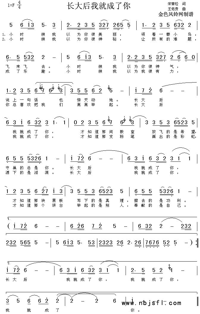 [其他乐谱]长大后我就成了你 歌曲类 简谱 宋青松王佑贵