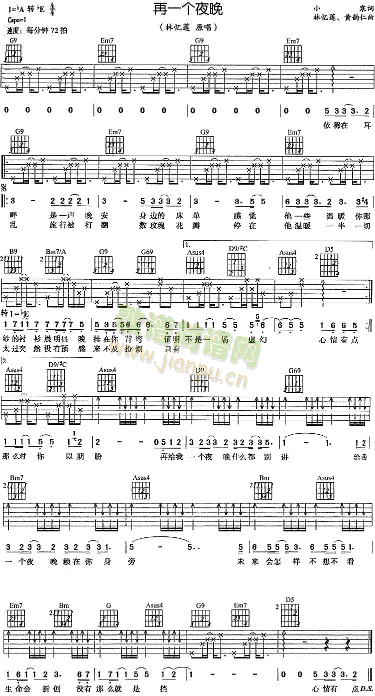 [吉他谱]再一个夜晚 林忆莲