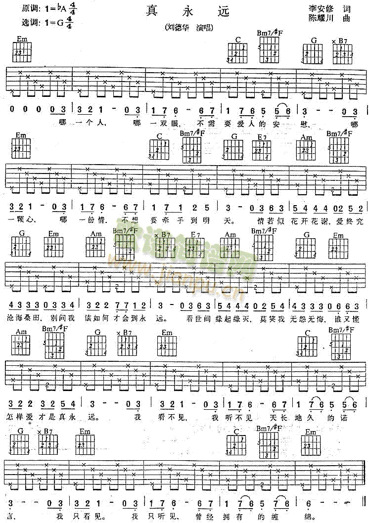 [吉他谱]留住我吧 雷有曜、黄丹仪