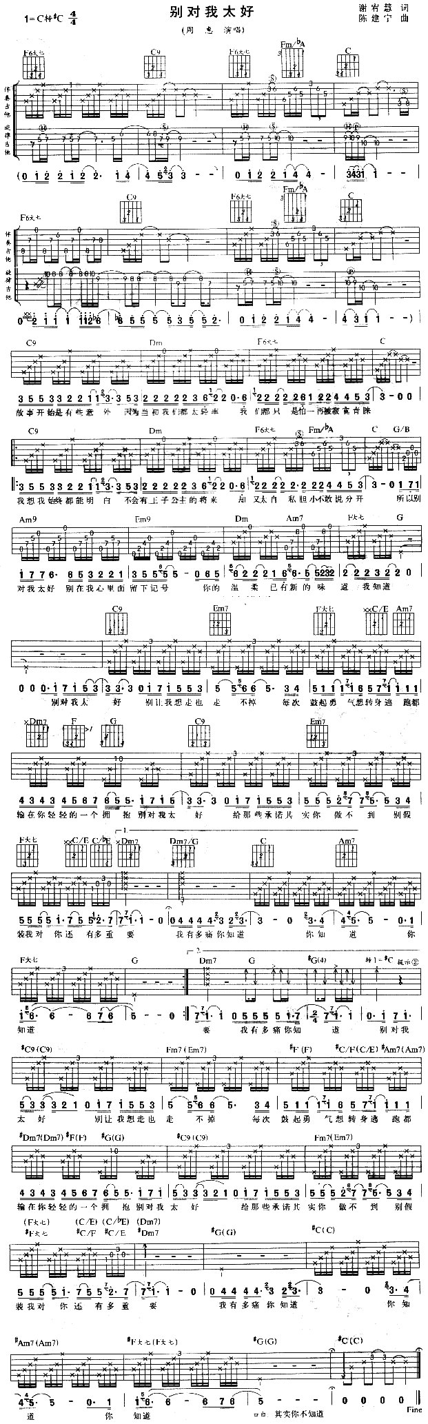 [吉他谱]对你太在乎吉他谱( GTP 六线谱)- 未知