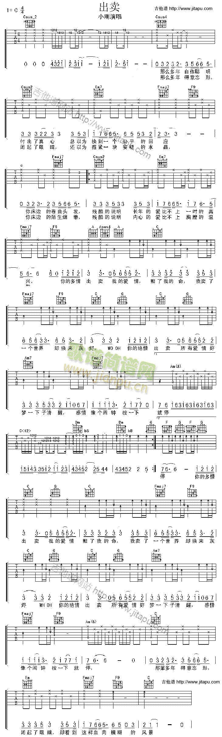 [吉他谱]出卖 小刚