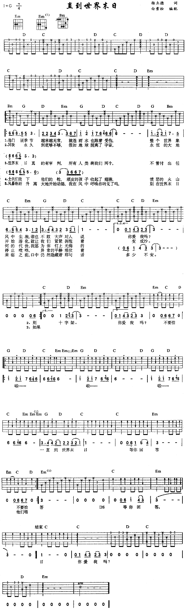 [吉他谱]直到世界末日 未知