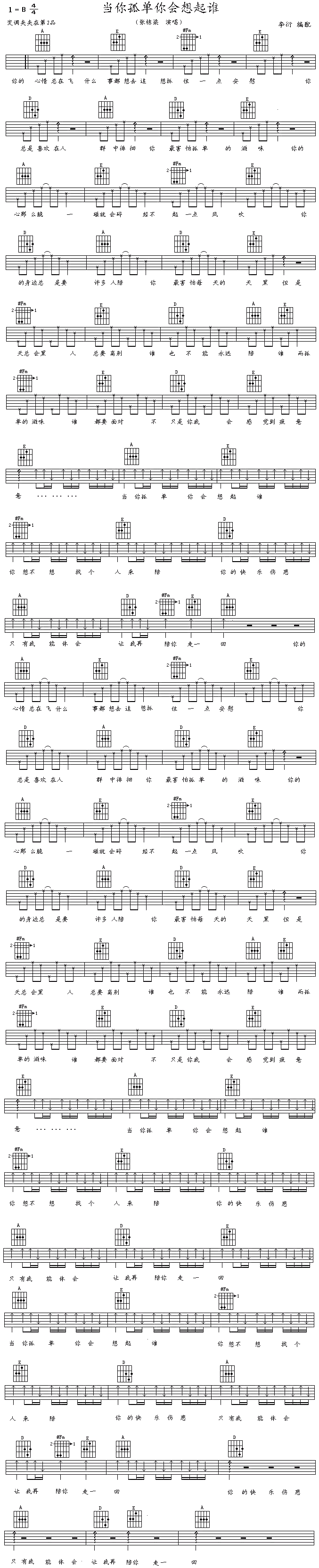[吉他谱]当你孤单你会想起谁 张栋梁