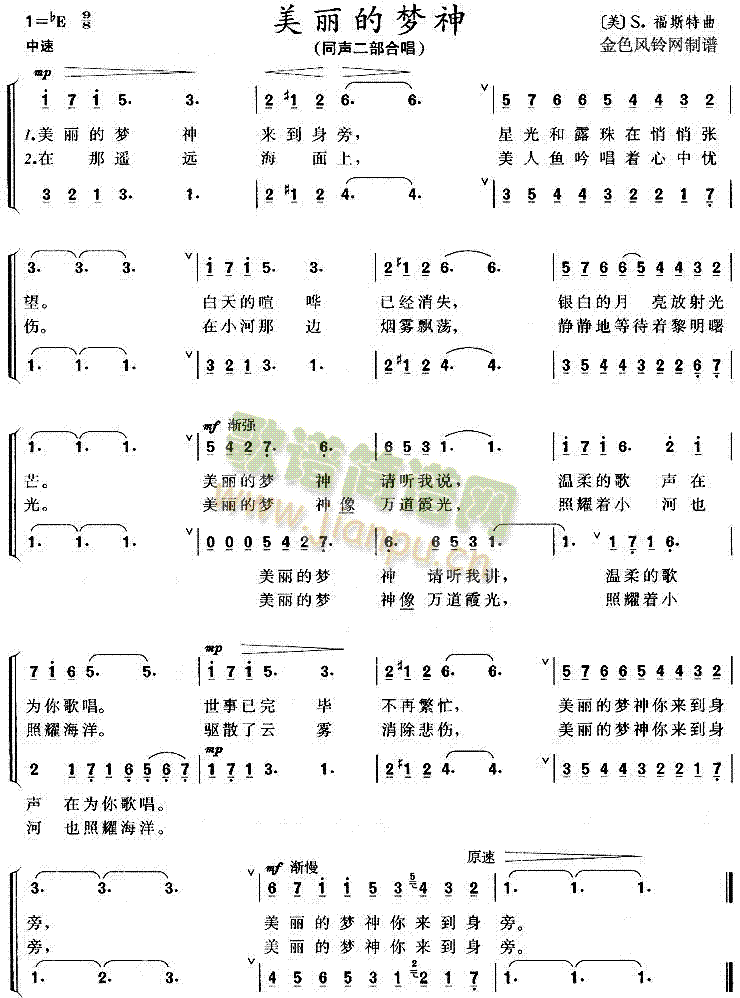 [五字歌谱]美丽的梦神[合唱曲谱] 未知