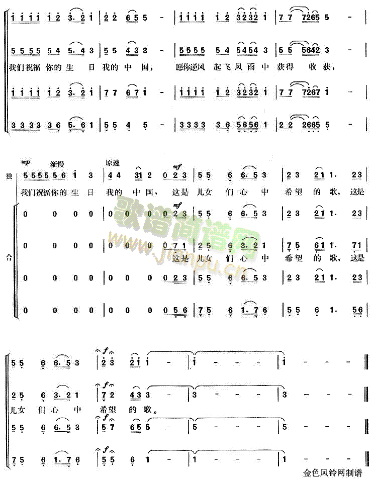 [九字歌谱]十月是你的生日中国[合唱曲谱] 未知