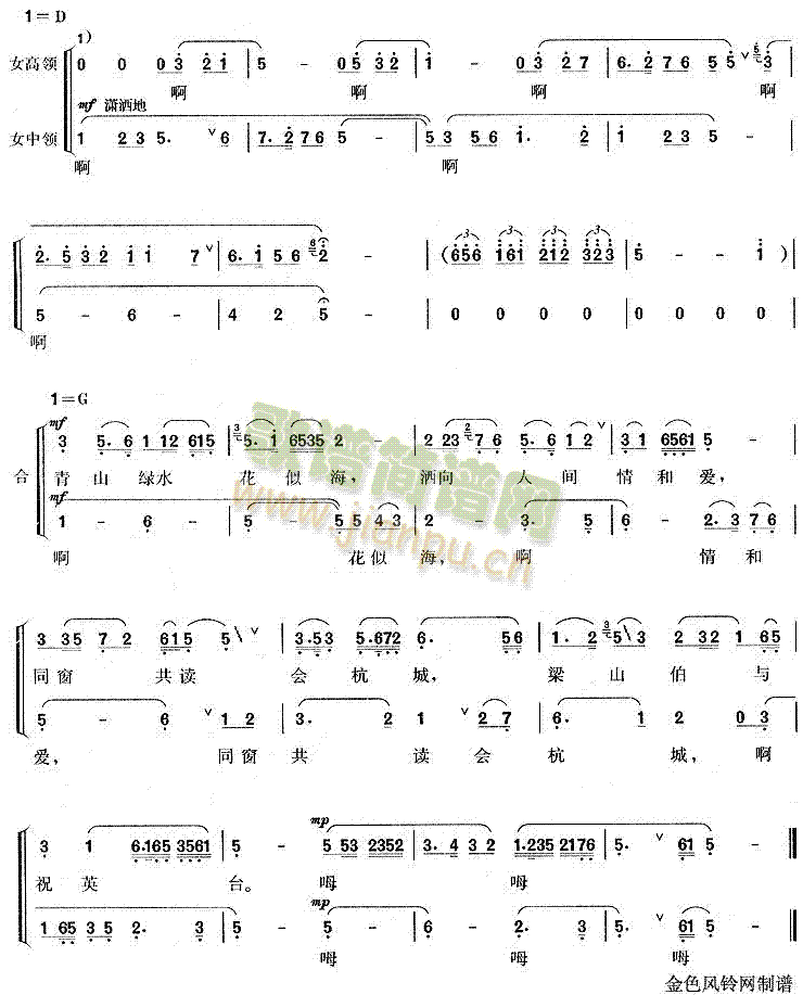 [四字歌谱]梁祝序歌(根据小提琴协奏曲《梁祝》改编)[合唱曲谱] 未知