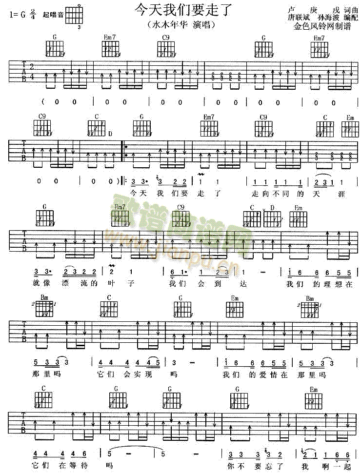[其他乐谱]今天我们要走了-弹唱 吉他类 流行 水木年华