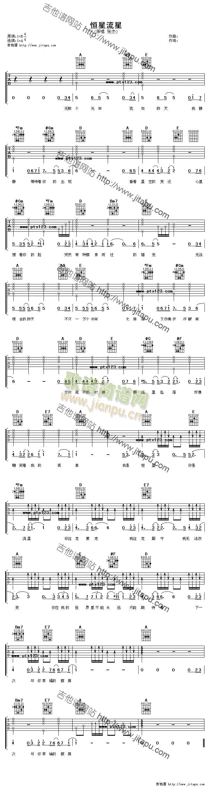 [吉他谱]恒星流星 张杰