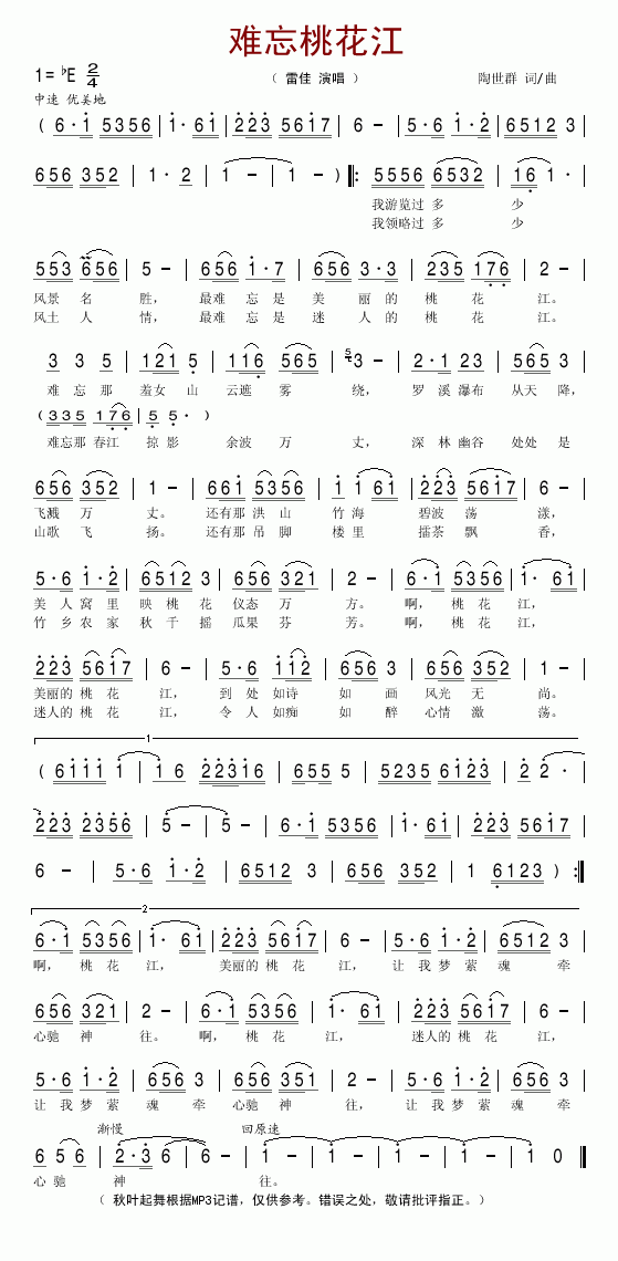 [九字歌谱]桃花江2+软骨美人 器乐曲
