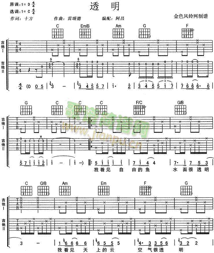 [吉他谱]透明 刘若英