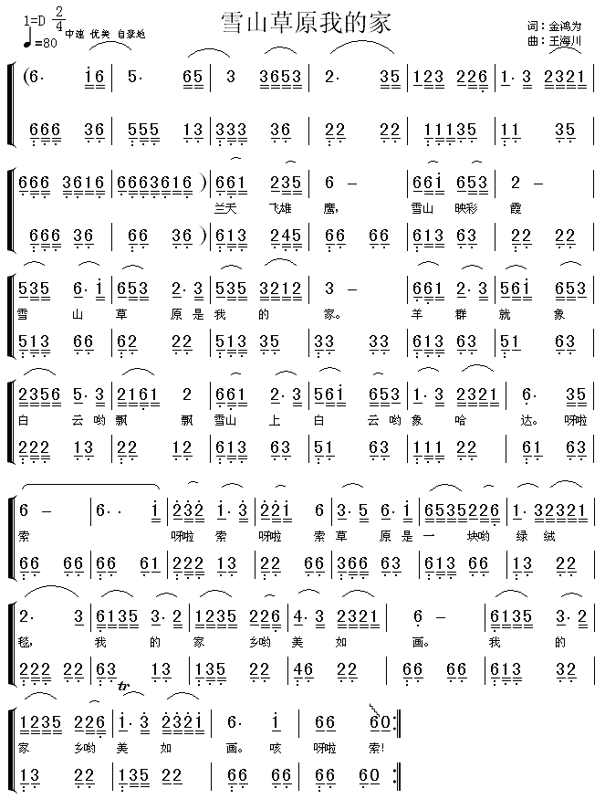 [七字歌谱]雪山草原我的家