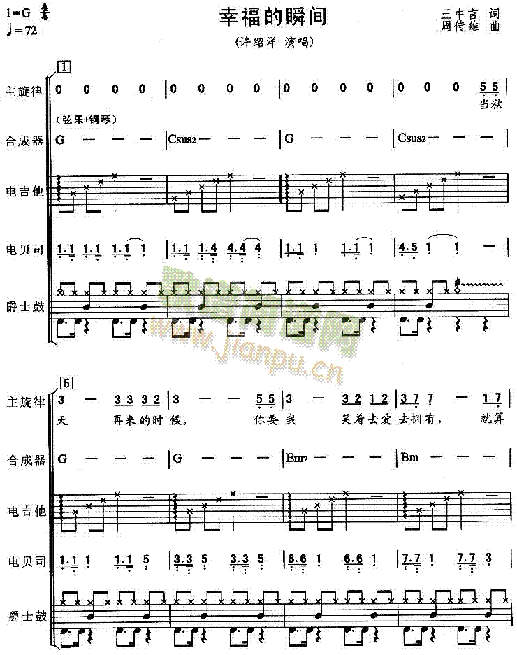 [五字歌谱]幸福的瞬间 许绍洋