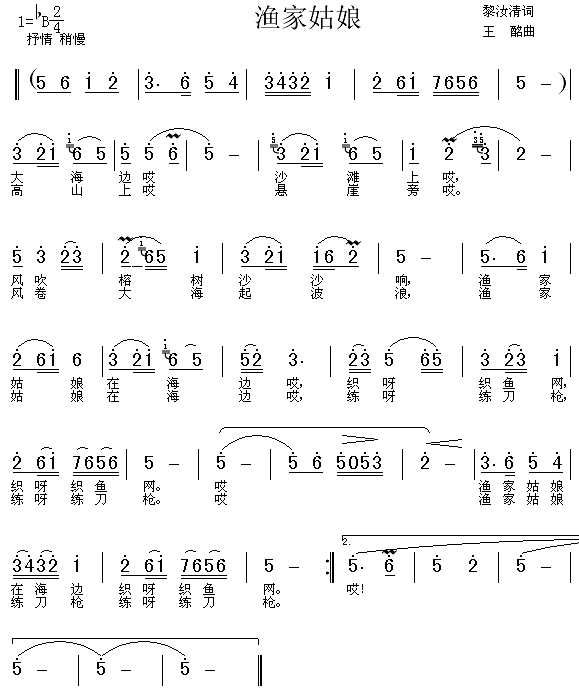 [七字歌谱]渔家姑娘在海边