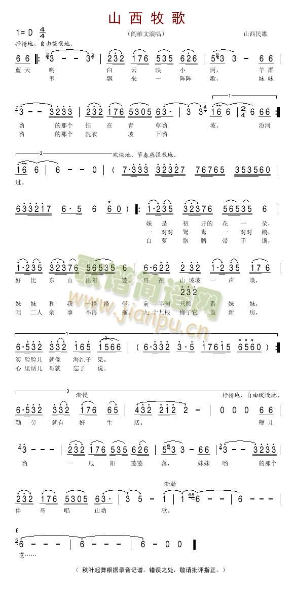 [四字歌谱]山西牧歌 阎维文