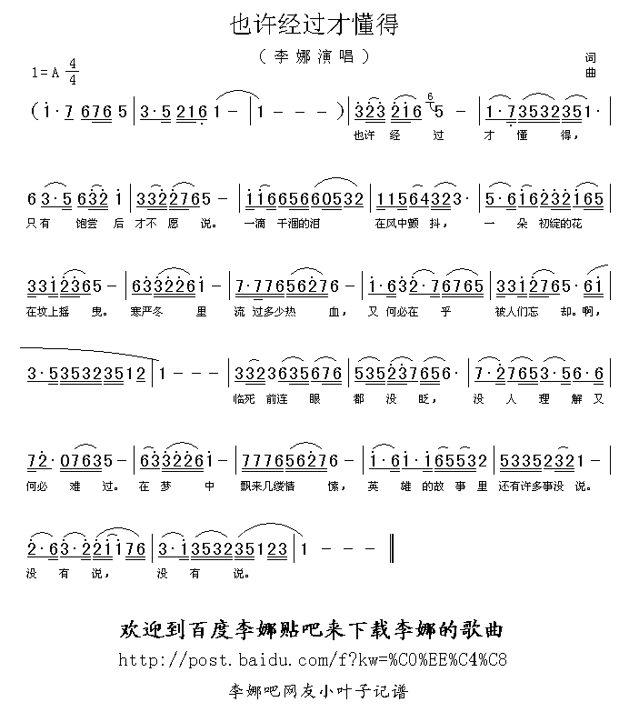 [七字歌谱]也许经过才懂得 李娜