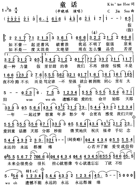 [古筝扬琴谱]童话 未知